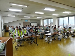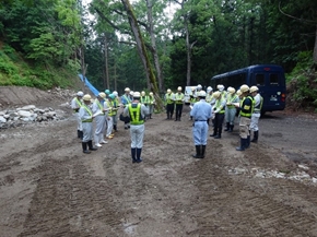 6月19日に協会安全部会員(会員全社で構成)、安全指導員、小出労働基準監督署、南魚沼警察署、南魚沼地域振興局、市町公共工事発注部課など50名の出席で、管内を上方面・下方面の2班に分け現場を点検しそれぞれの立場から感想を出し合いました。パトロールの後は、協会の大会議室において安全に対する関係機関からの講話や情報提供がなされ、熱中症や転落等事故防止について出席者一同認識を新たにしました。
