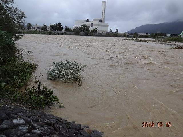 台風19号の影響により10月12日朝から災害時緊急パトロール実施指示が地域振興局地域整備部からあり、11日深夜に関係各社にこの旨連絡をしました。 12日は、予め定められた班編成によりパトロールを開始し、携帯メールにより出動報告、状況報告、終了報告を行いました。 パトロールによる報告などにより適切な応急工事が随所において実施されました。 地域整備部からも謝意の言葉をいただきました。