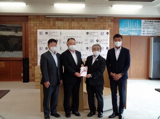 南魚沼市役所では、市長に当協会から避難所開設時の床マット(91cm×50m)38巻(うち南魚沼建設業協会から15巻、新潟県建設業協会六日町支部から23巻)、湯沢町役場において、町長に南魚沼建設業協会から段ボールマジックベッド14組、六日町支部から簡易間仕切り段ボール畳8組を贈呈しました。
