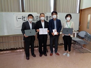 7月1日に南魚沼市、湯沢町、南魚沼市社会福祉協議会及び湯沢町社会福祉協議会に災害時活用備品及びボランティア活動備品贈呈式を行いました。