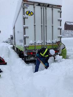 新潟県建設業協会六日町支部では、17日深夜に県本部を通して新潟県からの応援要請が入り、18日午前1時から滞留車両の救出作業応援に入りました。
