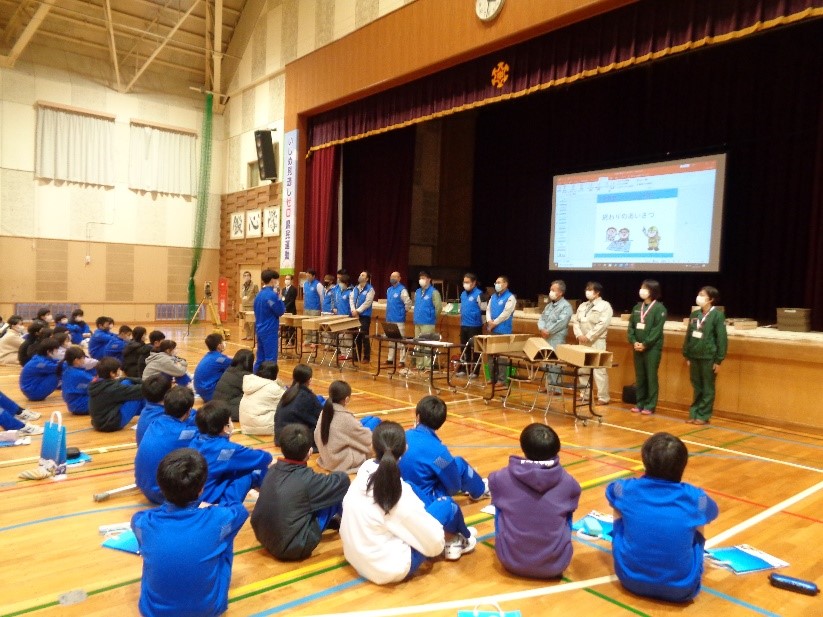12月7日、南魚沼市立六日町中学校大体育館において職業体験「土木のお仕事」出前講座を実施しました。