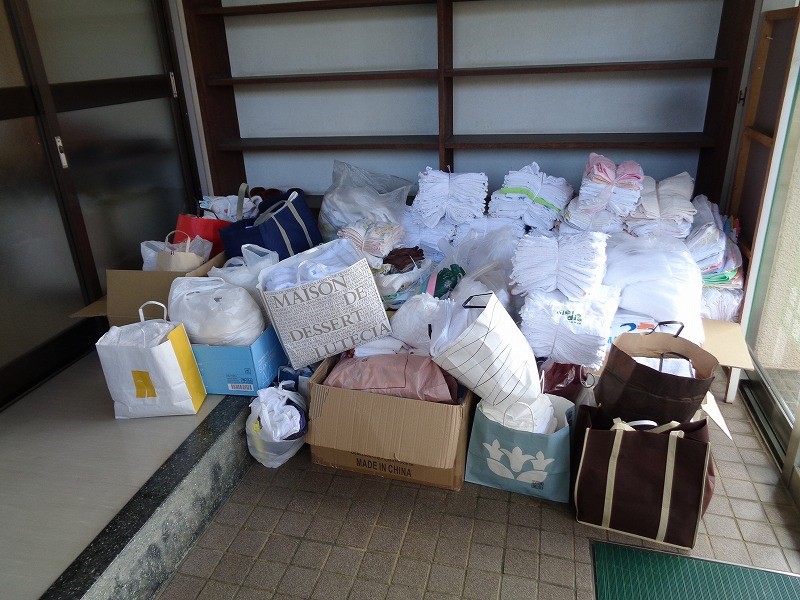 8月3日からの県北地域の大雨による大災害により被災した家屋等の復旧に欠かせない、『古タオル』の提供を会員に急遽呼びかけました。 写真のとおり多くのタオル提供があり、8月22日に南魚沼市関係機関をとおして関川村でのボランティア活動に役立てていただくこととなりました。